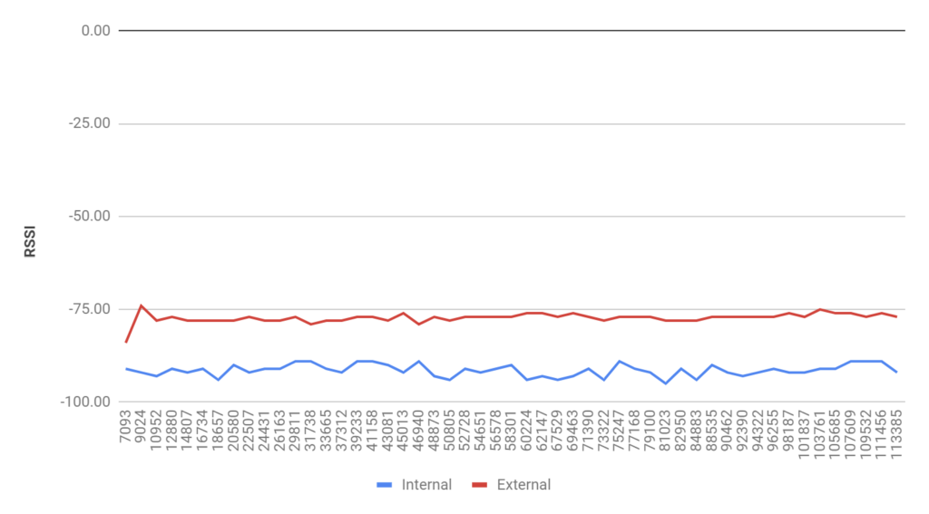 The red – external – line clearly shows an improvement over the internal antenna.