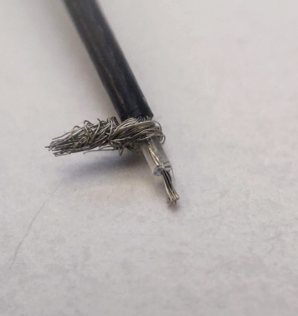 I cut back the end of a SMA pigtail connector, and tinned the ends.