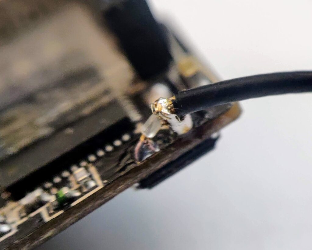 Before starting the internal antenna removal, I ran a simple sketch to list found AP’s. With the internal antenna, a maximum of 8 networks were discovered. With the external antenna, a maximum of 12 networks were found.