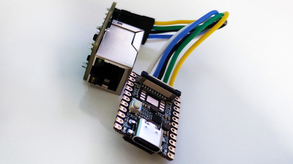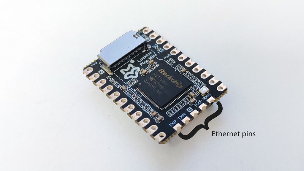 Fortunately the Mini has a PHY and MAC, broken out to the bottom edge which you can link to an ethernet port. Even better, the Milk Duo V shares a similar interface, so you can use this ethernet adapter.